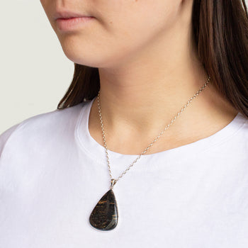 Playfully coined the ‘Sorcerer’s Stone’, Nuummite is believed to be over three billion years old. It is a stone of personal magic, increasing the frequency of synchronicities, luck and intuition. It is a useful tool in removing negative energy blockages. Its irridescent embellishments glimmering under the stone’s clouded darkness remind one that greater opportunities are in reach when one begins to discard self-imposed habits and challenges.