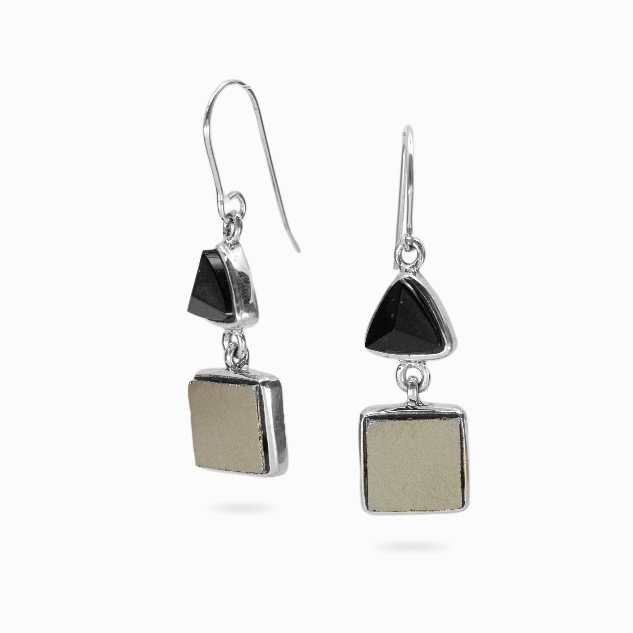 Garnet, Black Tourmaline & Black Obsidian Drop Earrings