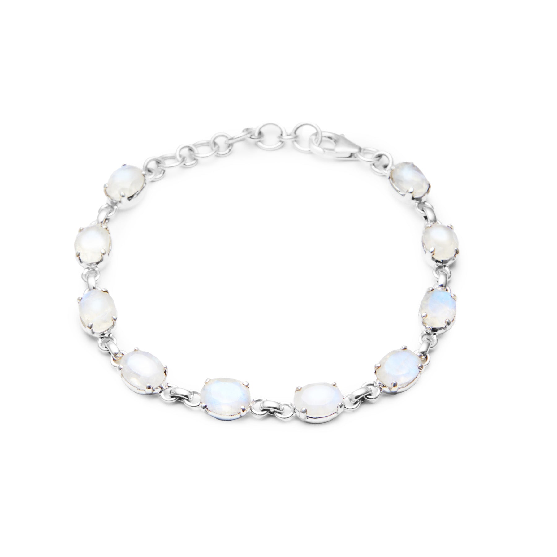 Blue Topaz & Rainbow Moonstone Bangle Bracelet