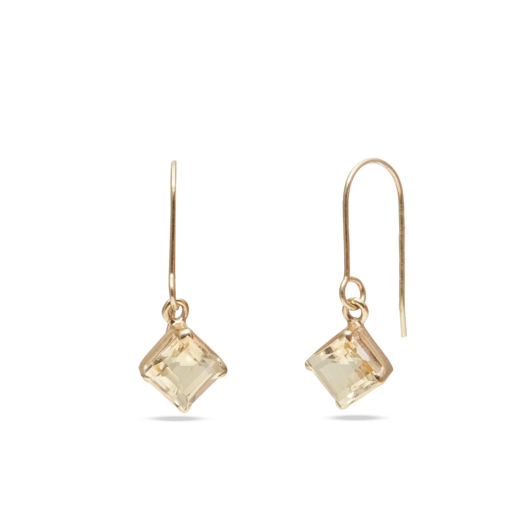 Citrine faceted square diamond set claw Drop Earrings Citrine faceted square diamond set claw Drop Earrings