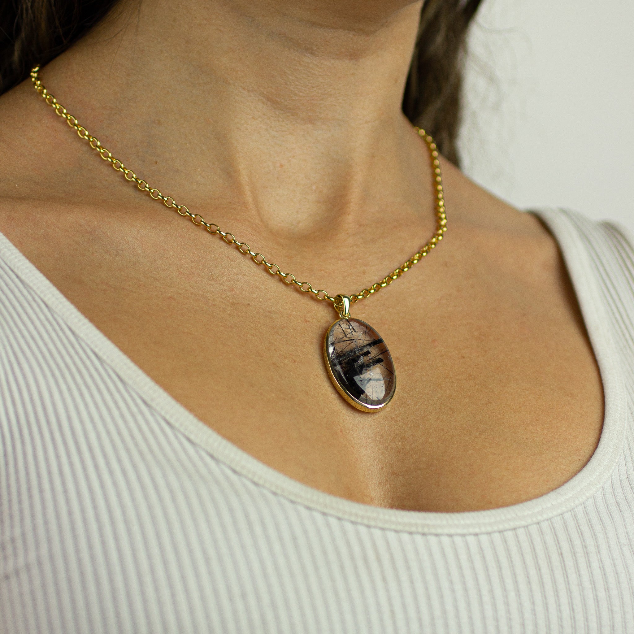 Discover our striking tourmalinated quartz jewellery collection, featuring nature's own ink drawings captured in crystal. Each piece showcases genuine tourmalinated quartz gemstones with dramatic black tourmaline needles frozen inside clear quartz, creating unique patterns that make every item truly one-of-a-kind.