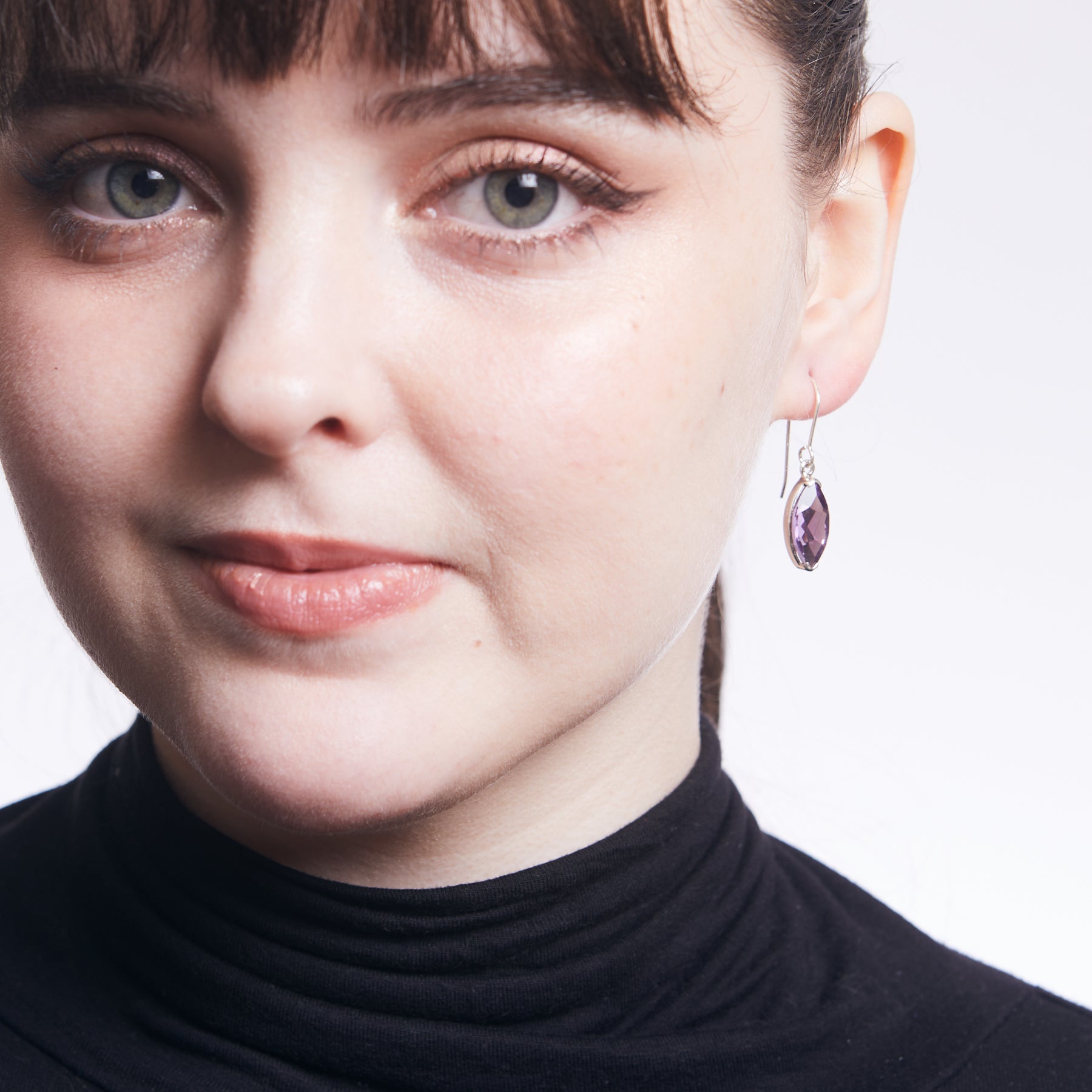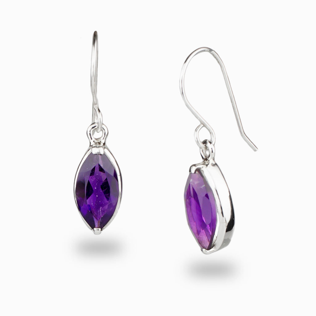 These marquise shaped, faceted drop Amethyst earrings are a perfect way to subtly add a touch of colour to your look while keeping it super classy. Purple is an enchanting and alluring colour and Amethyst is a much loved classic. Amethyst is highly regarded for its calming and protective properties. It is believed to promote spiritual awareness, inner peace, and emotional balance.