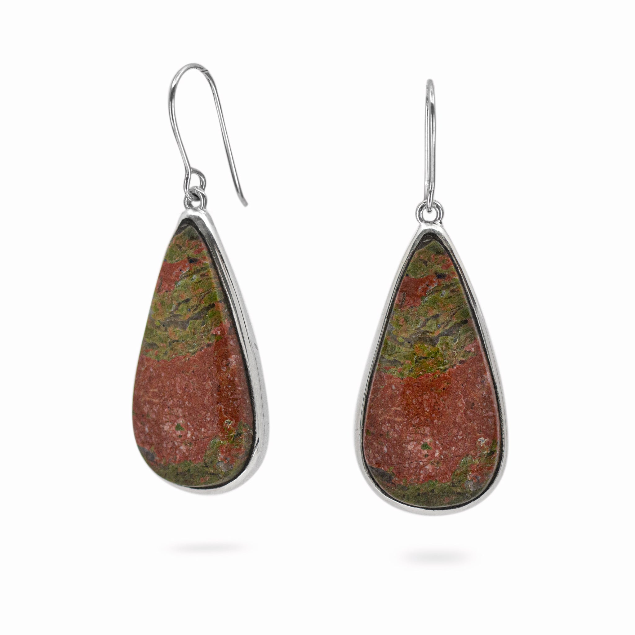 Unakite is a unique form of stone made up of feldspar, green epidote and quartz. It’s interesting and earthly charm has a warm energy that works well with any wardrobe in any season. A great stone to keep balance between emotions and spirituality. Wearing these earrings helps one to release any energy blockages that have been inhibiting ones growth. This stone is also great for pregnancy or trying to conceive, promoting healthy pregnancies.