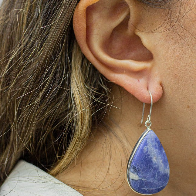This earring's range of dark blue hues is quite unique. This deep blue beauty really pops against white and light colours, but will still give you that glam look against darker colours. This mineral gives its wearer the ability to reach logical and rational conclusions. It aids in the elimination of confusion, allowing one to use intellect in all situations and provides a purpose with lightness of heart. It can also be used to improve one's ability to recognise and express true feelings.