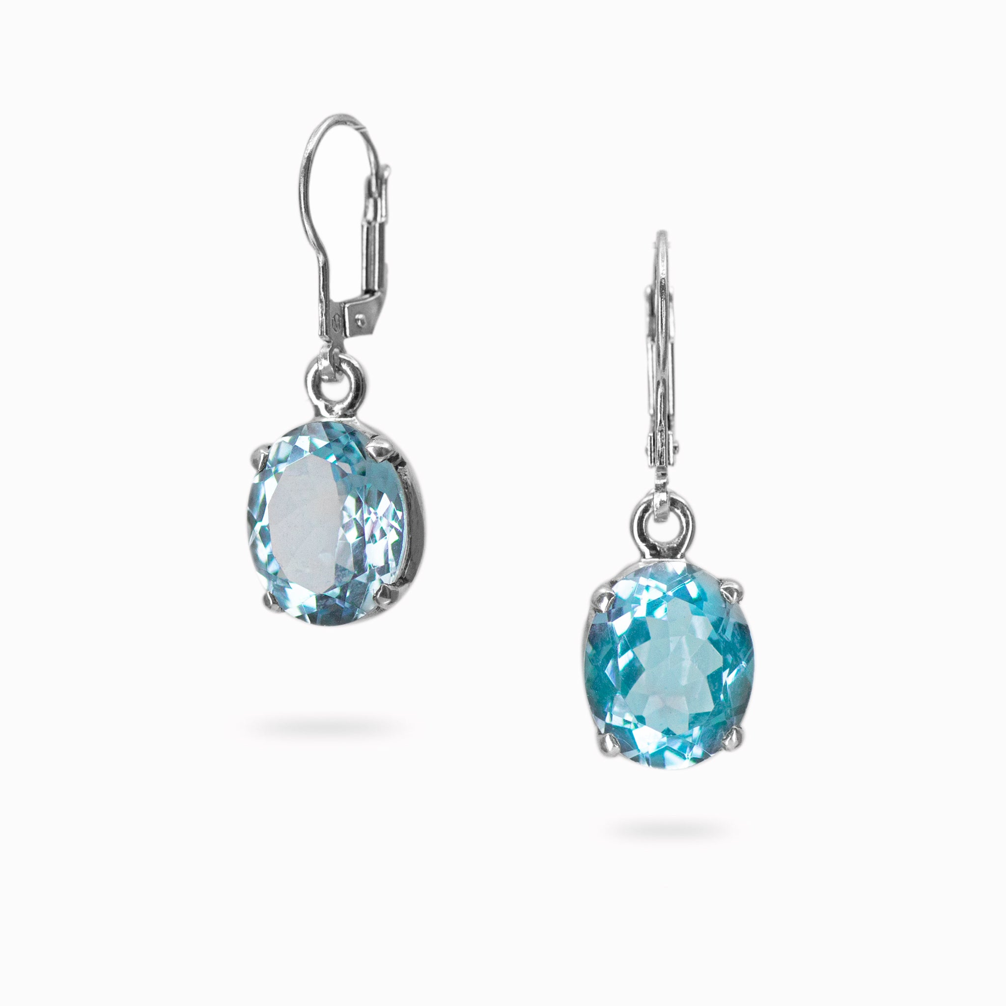 A simple yet stunning pair of Blue Topaz oval facted drop earrings. Their faceted cut gives them a great sparkle and they can dress up any outfit you wear.