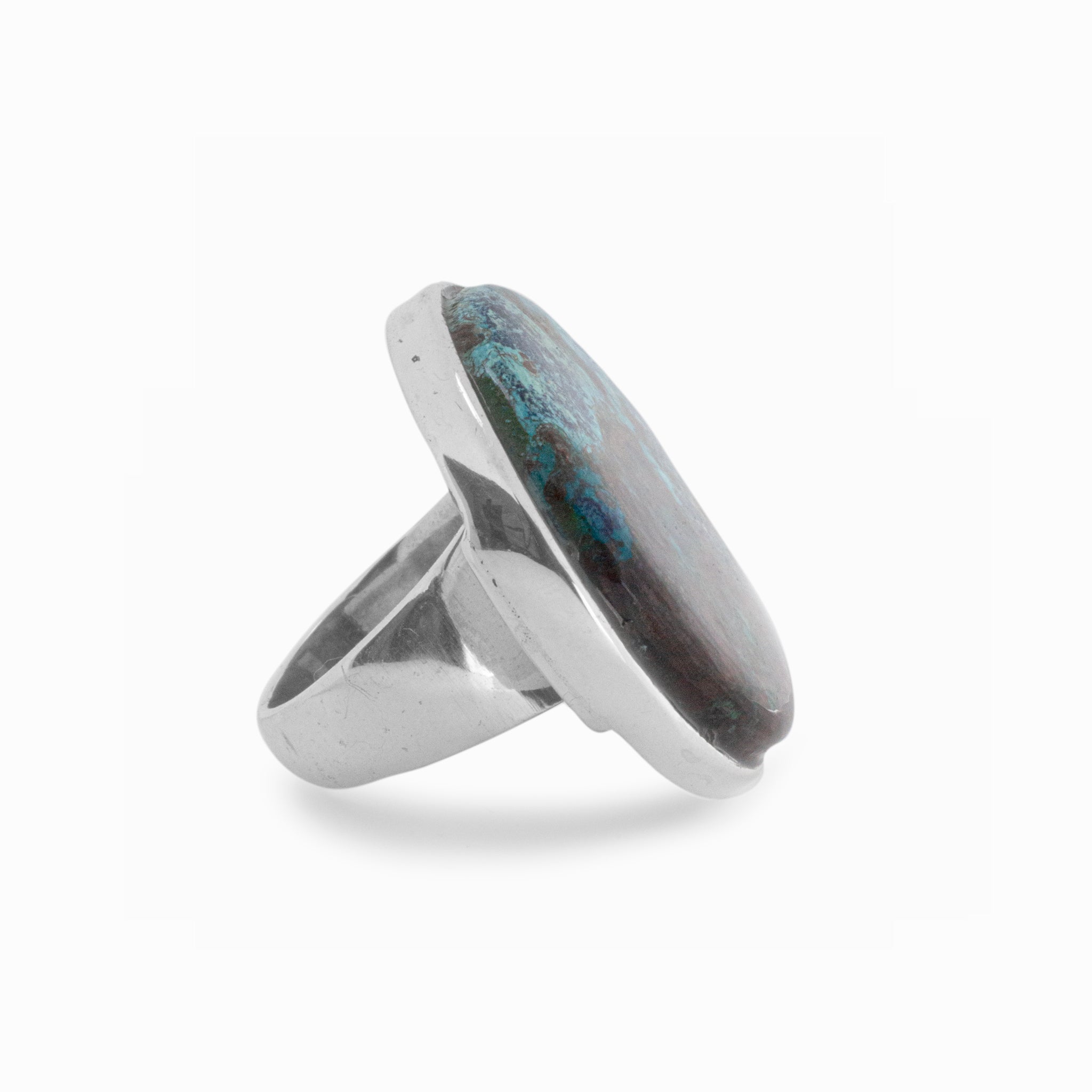 This dreamlike crystal has a lovely combination of brilliant ocean colours and is frequently created with Malachite, Azurite, and Dioptase. Natural Shattuckite gems have an optical phenomena that displays varied colours when viewed from different angles, especially when viewed with polarised light. Wear the ring day or night; the colours will stand out and create a statement with any attire type or event. Shattuckite can help reshape one's reality, allowing for further growth and assisting in spiritual channelling. This mineral can also help you express and perceive the truth while also conveying a calming influence.