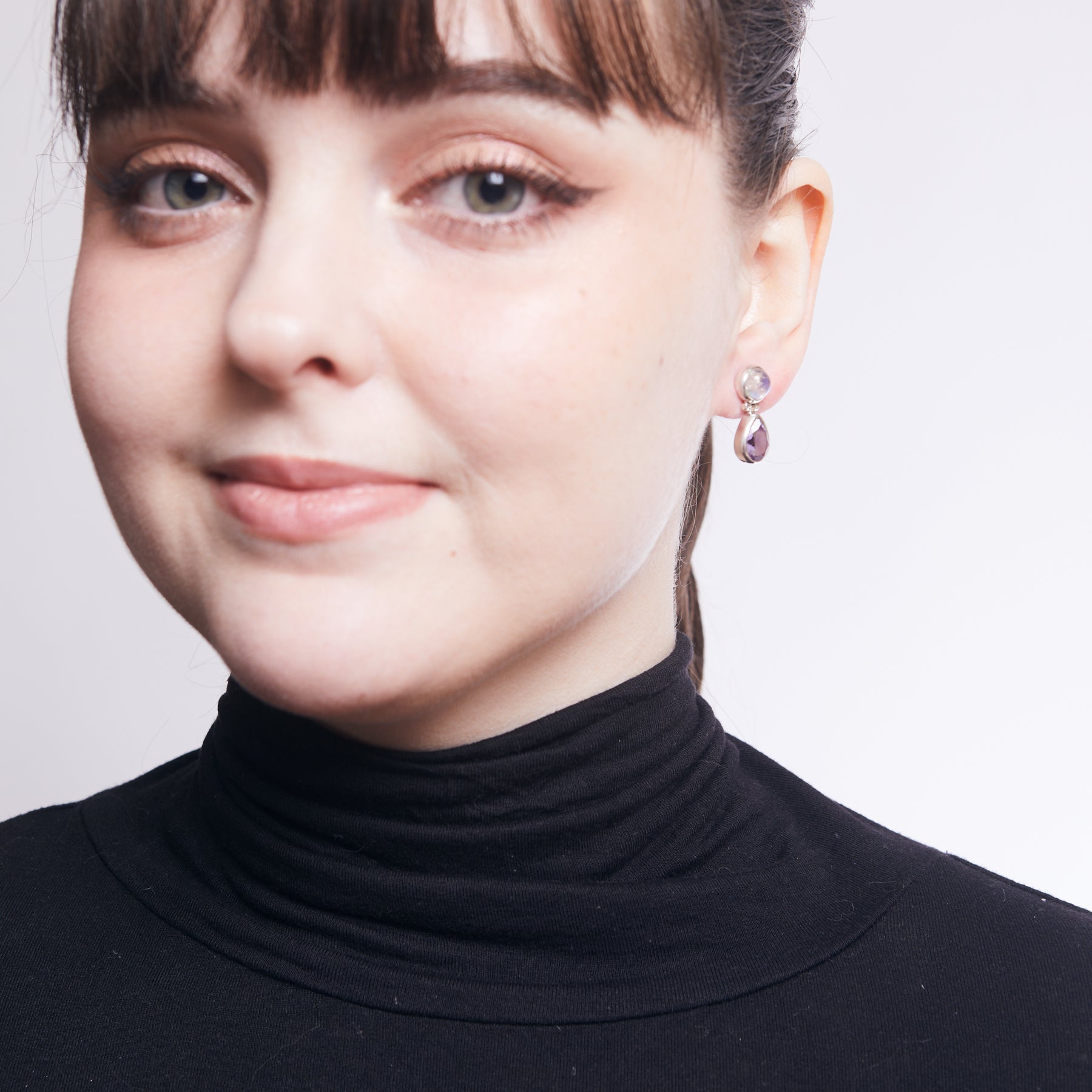 Paired with the enchanting purple hues of Amethyst, these earrings offer a touch of sophistication and serenity. Amethyst is cherished for its calming properties, promoting emotional balance, spiritual awareness, and inner peace. Together, these stones create a beautiful balance of light, colour, and energy, making these drop earrings the perfect accessory for any occasion—whether you're seeking healing, tranquility, or simply a stunning addition to your look.