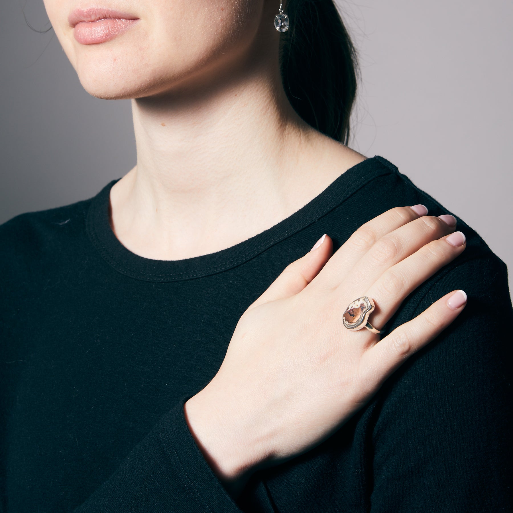 This part-polished metallic copper ring can be used to combat drowsiness and restlessness while also increasing initiative and optimism. Mix metals and be daring! This gemstone ring will go with everything.