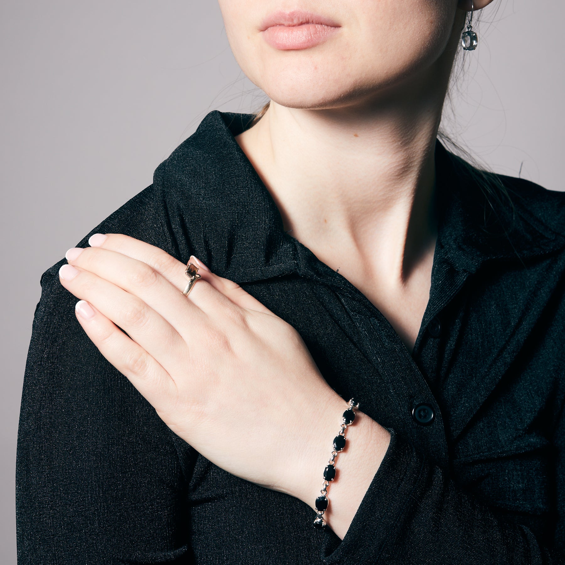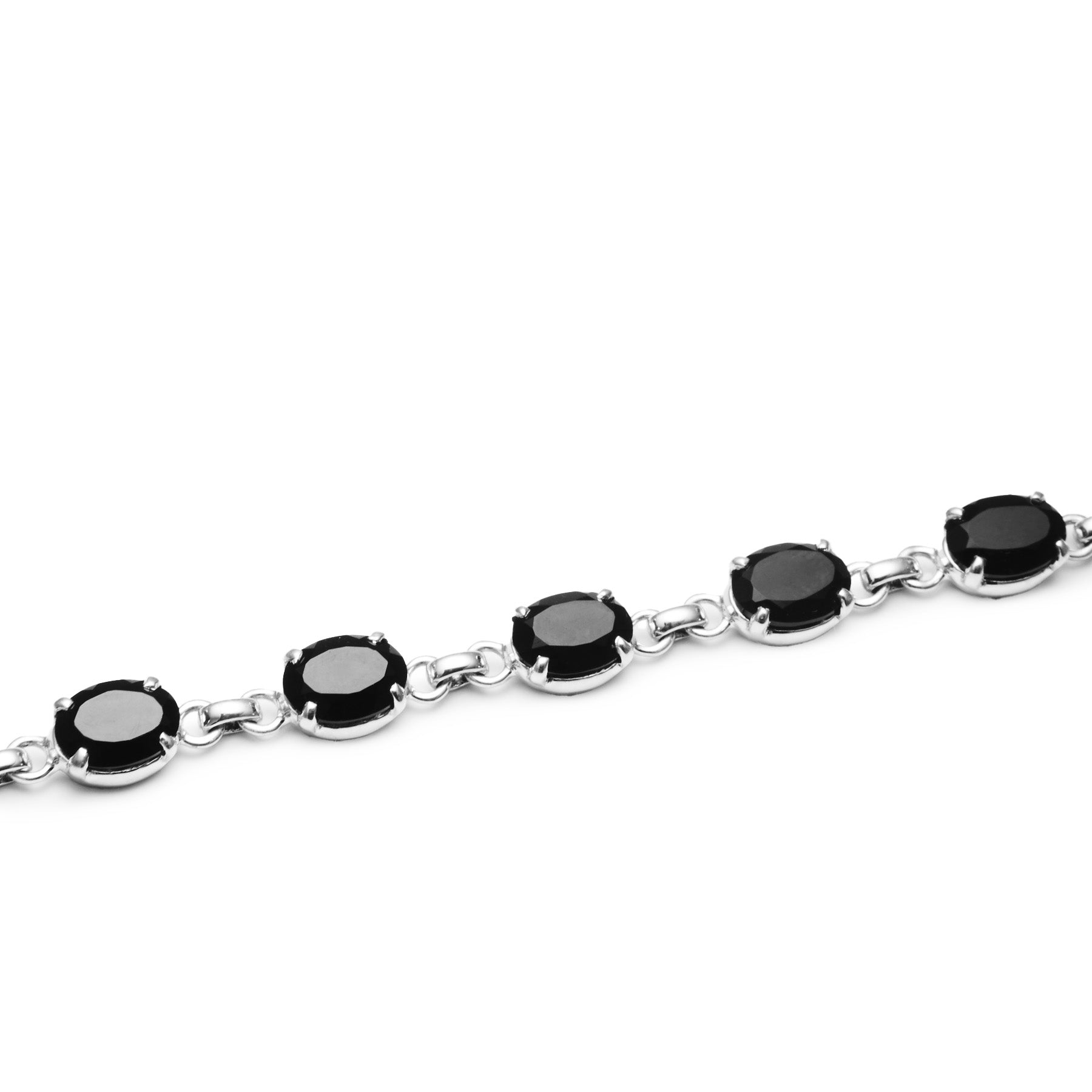 An oval faceted Black Onyx gemstone, with a claw setting and a dainty chain that wraps beautifully round your wrist. This black beauty of this bracelet complements everything! Not only is it the ideal stone for dressing up or down depending on the occasion, but it is also said to improve self-control, stimulate wise decision-making, and promote happiness and good fortune. Wearing this stone assists one in becoming the master of one's own destiny.