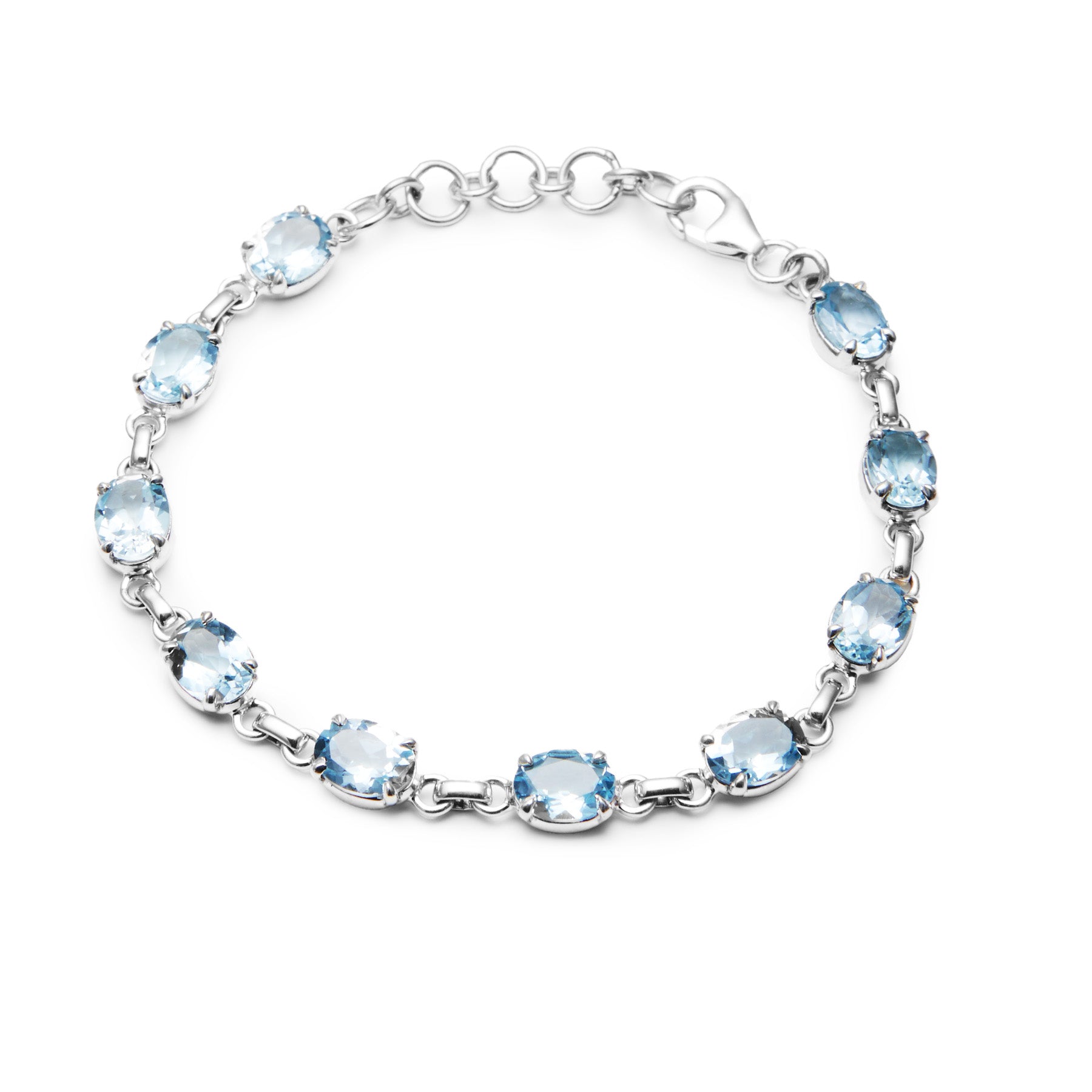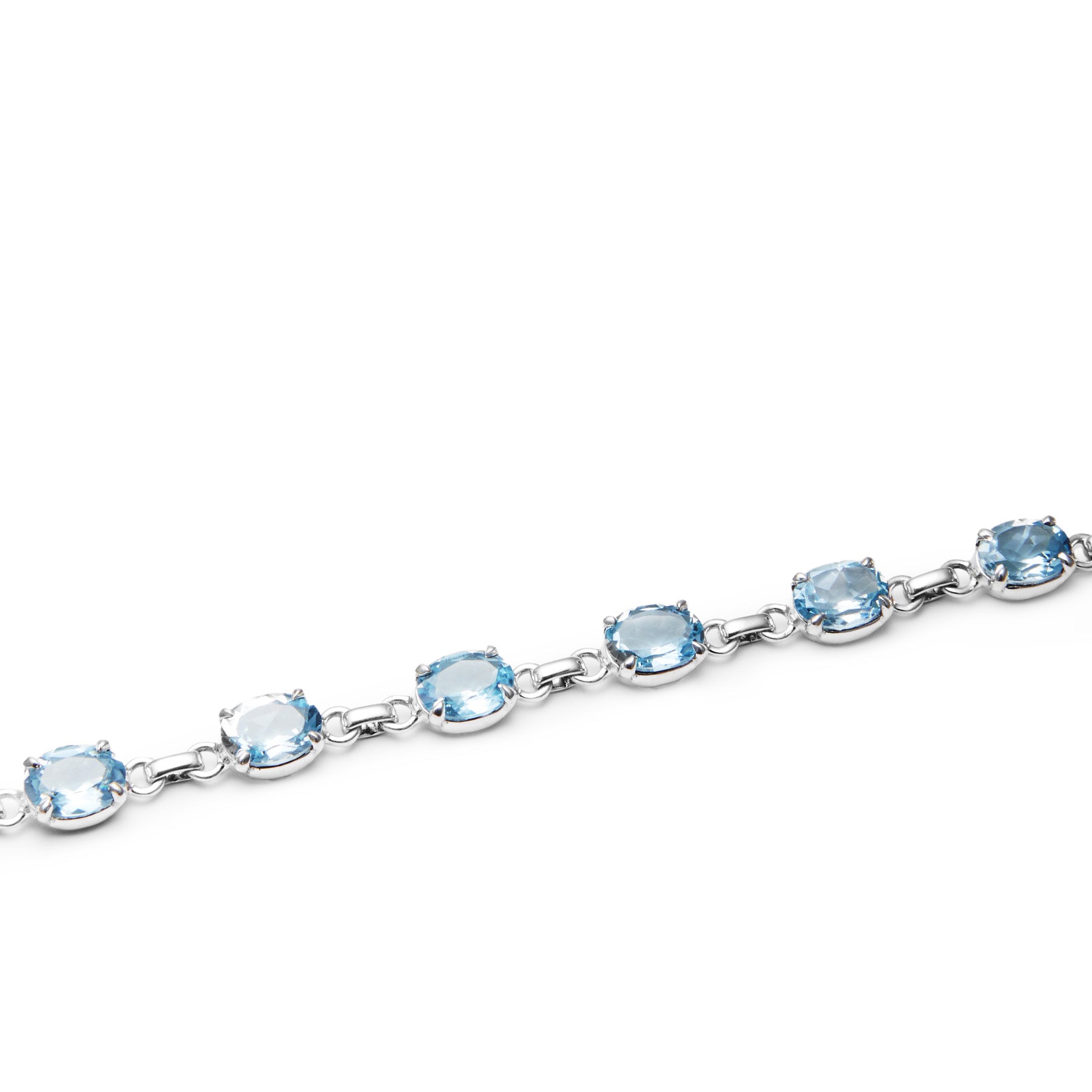 This luminous bracelet showcases a series of oval faceted Blue Topaz gemstones, each claw set to allow maximum light and brilliance. The cool, crystalline blue of the stones evokes clarity and calm, catching the eye with every movement. Known as the stone of communication and truth, Blue Topaz is believed to inspire confidence, creativity, and honest expression. Elegant and refreshing, this bracelet adds a vibrant sparkle to any look. It is perfect for uplifting your everyday or adding a polished finish to evening wear.