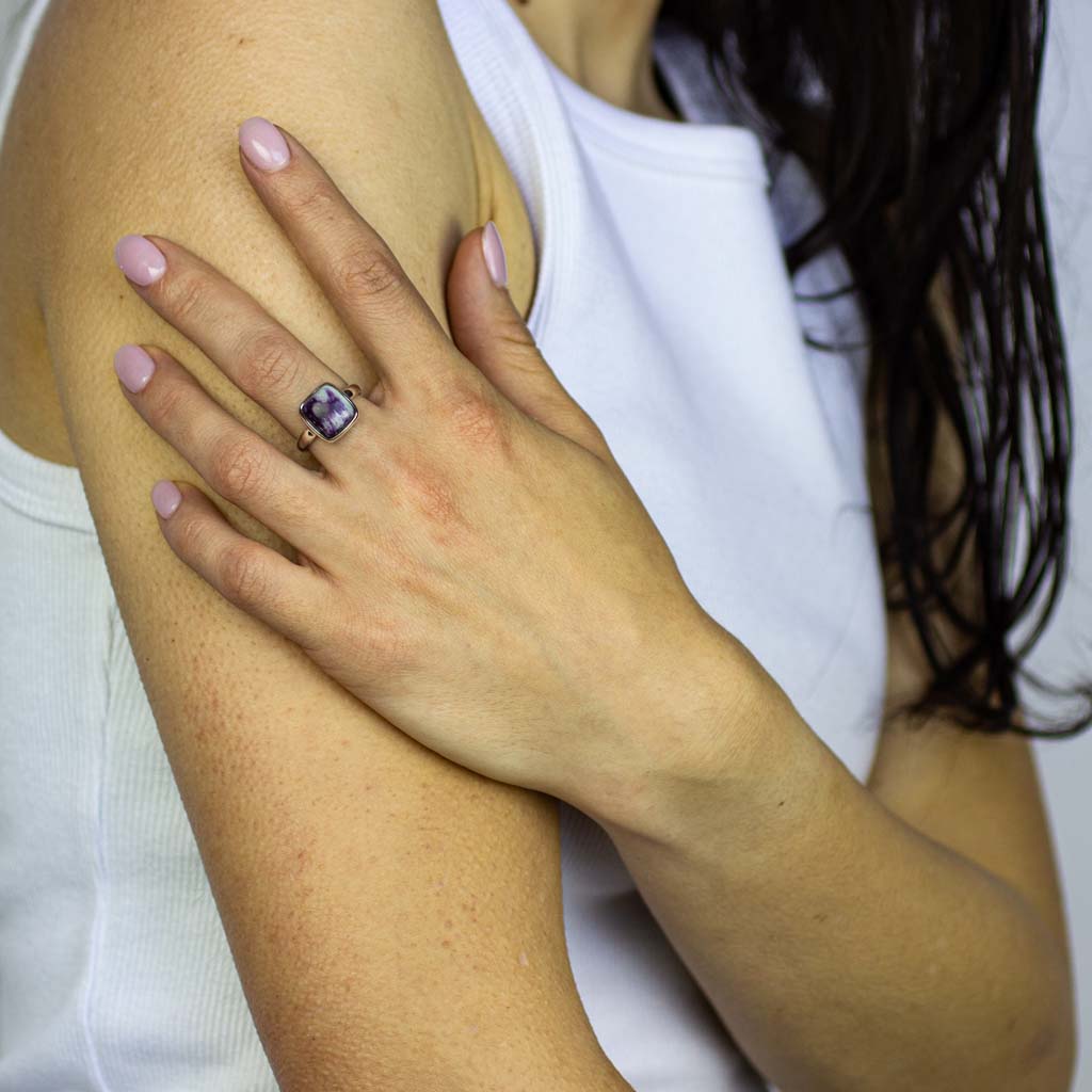 This beautiful purple kind of Clinochlore will help you realise your full potential and achieve what you're capable of. Kammererite is a traditional stone that is pleasing to the eye and provides the user of this gorgeous ring with a great sense of tranquilly.