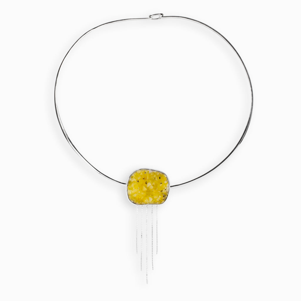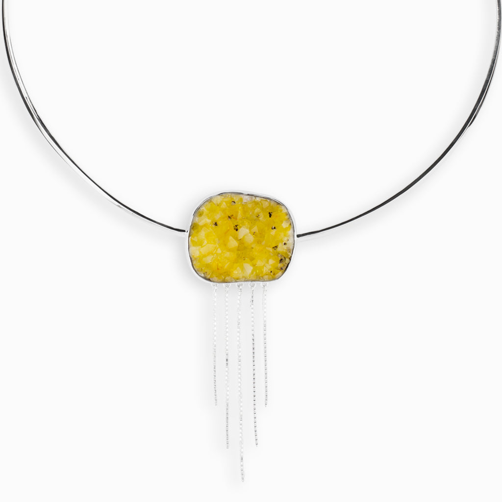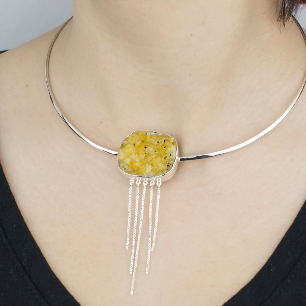 A beautifully unique choker necklace with a freeform druzy Citrine gemstone.