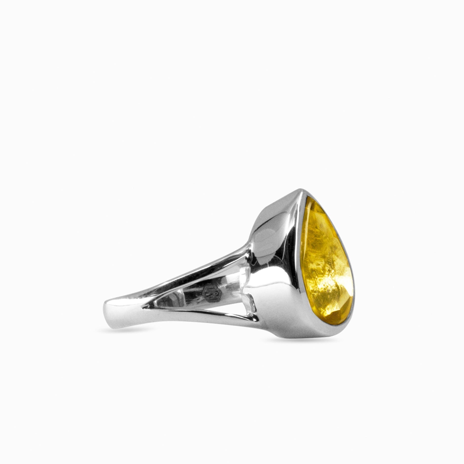 A beautiful teardrop shaped faceted ring. This warm, Golden gemstone; Citrine can be worn day and night to lift and brighten your style and day. Known as the stone of "wealth and abundance" Citrine carries the sun's power to emit a warm and comforting energy. This stone does not accumulate negative energies, therefore never needs to be cleansed.