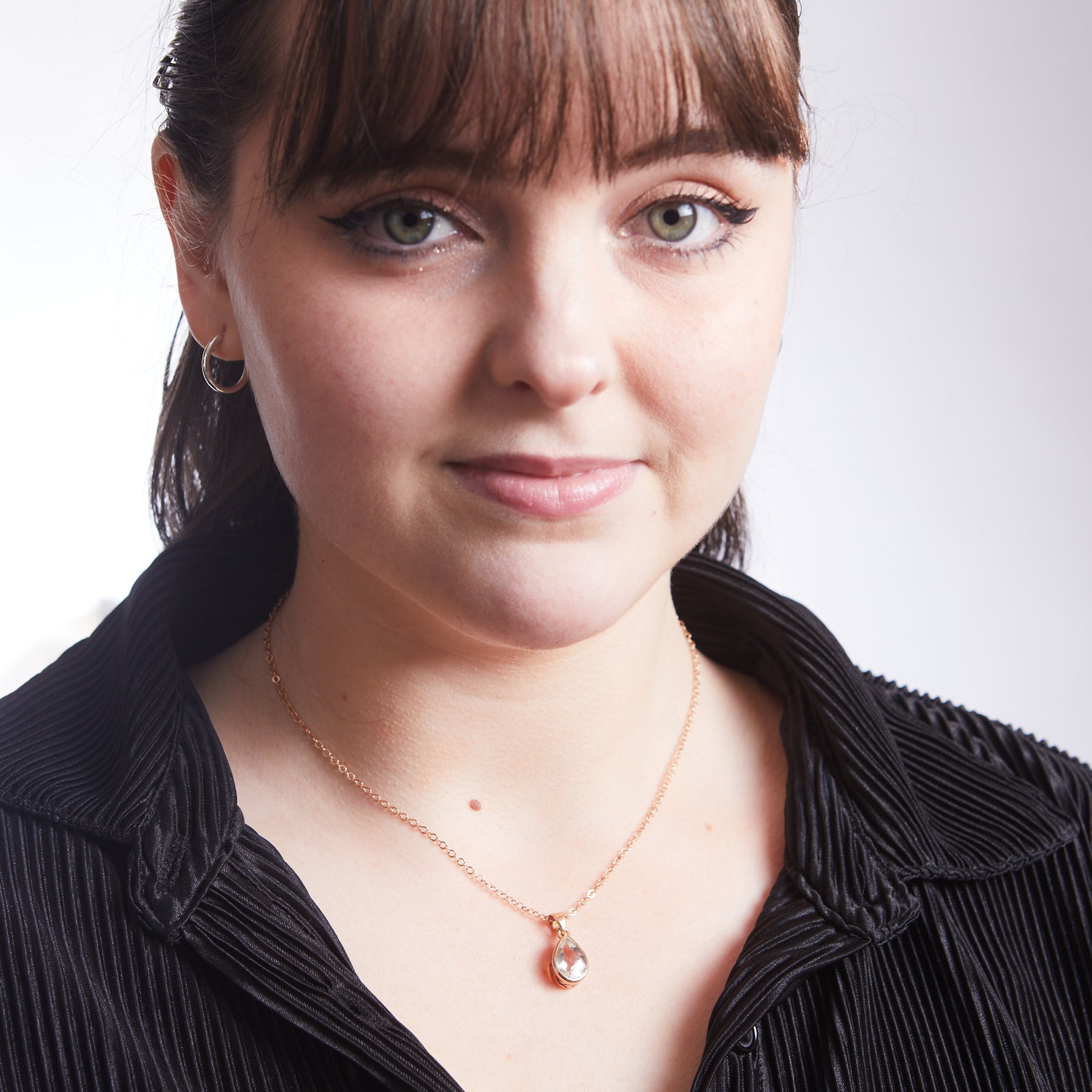 This necklace is beautifully elegant with its rose gold vermeil finish and teardrop shape. It's gorgeous facets create dimension and depth. Simple yet effective.