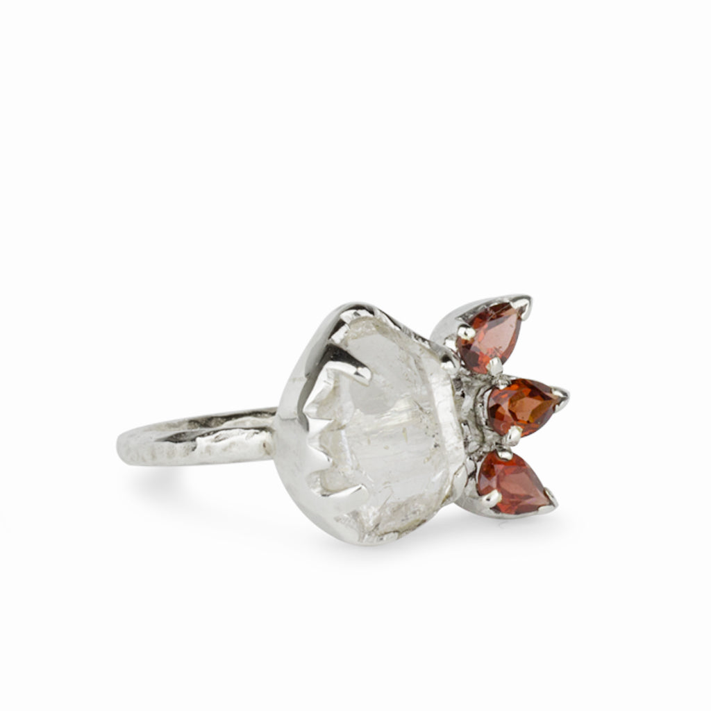 Garnet & Herkimer Diamond Ring
