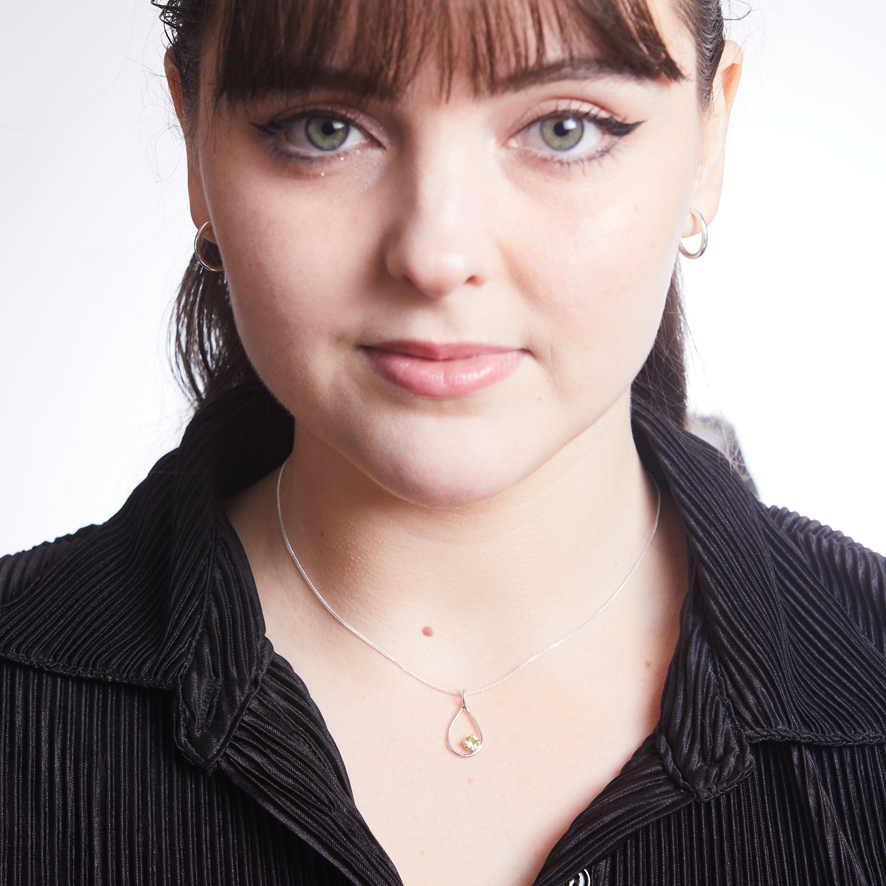 This beautiful birthstone necklace has a gorgeous teardrop frame with a small gemstone inside. This beautiful pendant is simple and elegant and looks great with most styles.