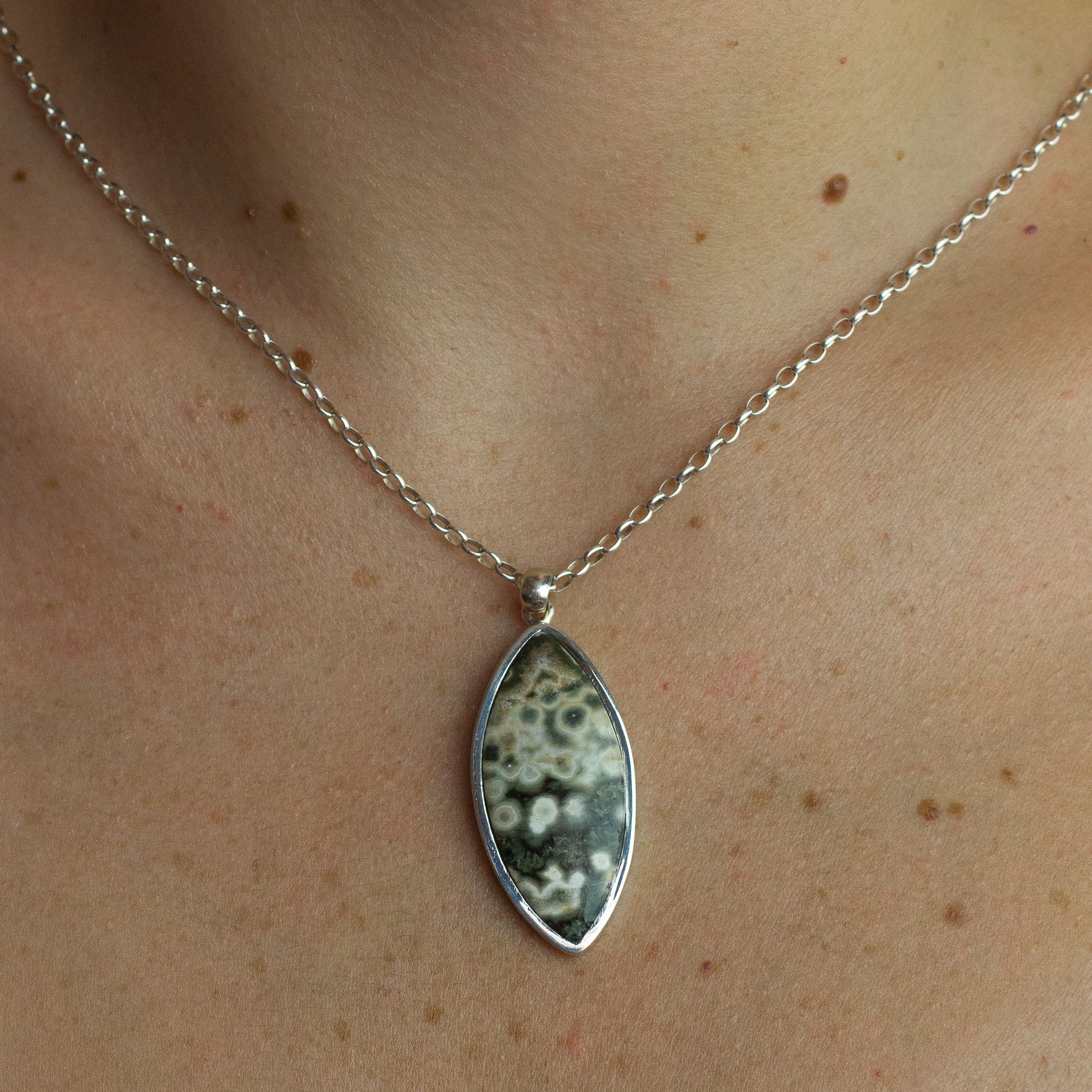 This sparkling agate radiates a reviving vitality reminiscent of the sea. Wearing this one-of-a-kind spotted necklace not only allows you to express yourself in a fun, creative way, but it is also claimed to enhance decision-making and help the wearer to let go of anything in their lives that isn't important or pleasant.