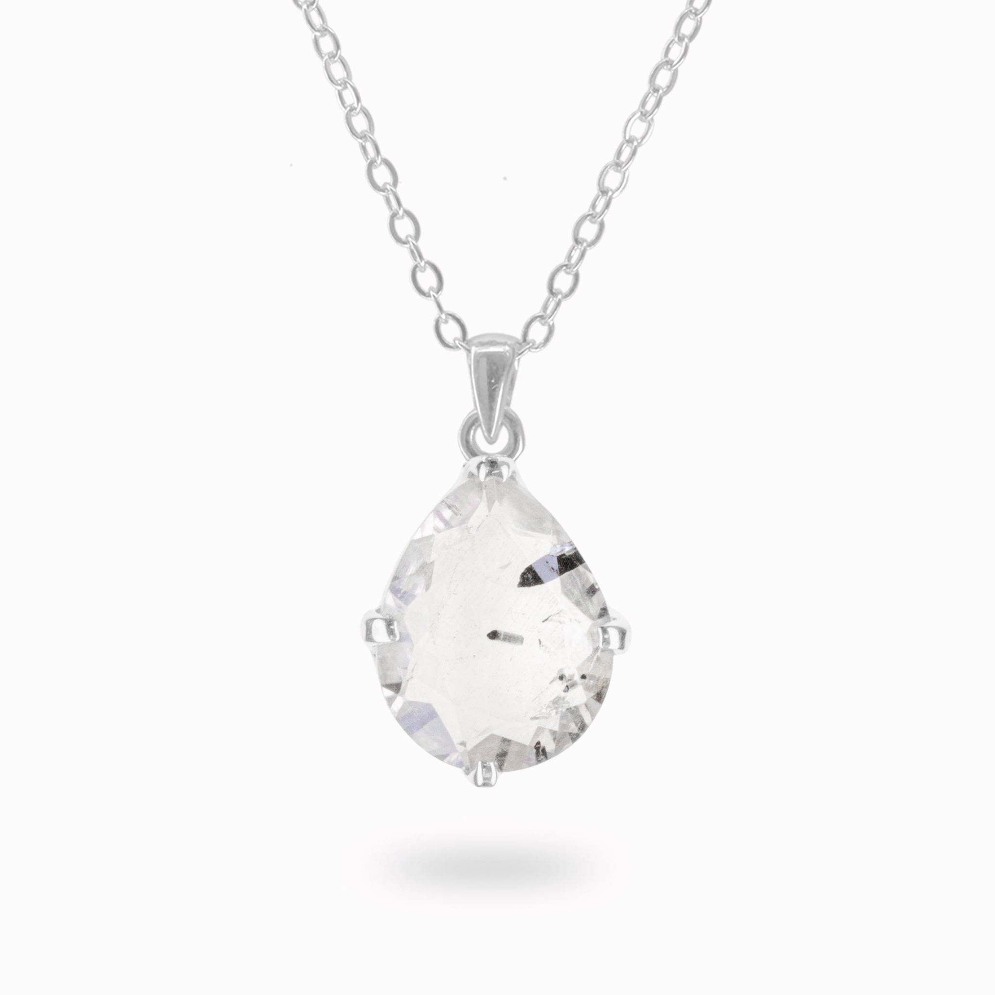 Bold and striking black tourmaline bands run gracefully through a clear and sharp quartz in this stunning necklace. The versatile monochromatic design can complement both extravagant and simple looks. Wearing this gem, which merges the qualities of tourmaline and quartz, can assist in breaking negative patterns in both nature and one's personal life.
