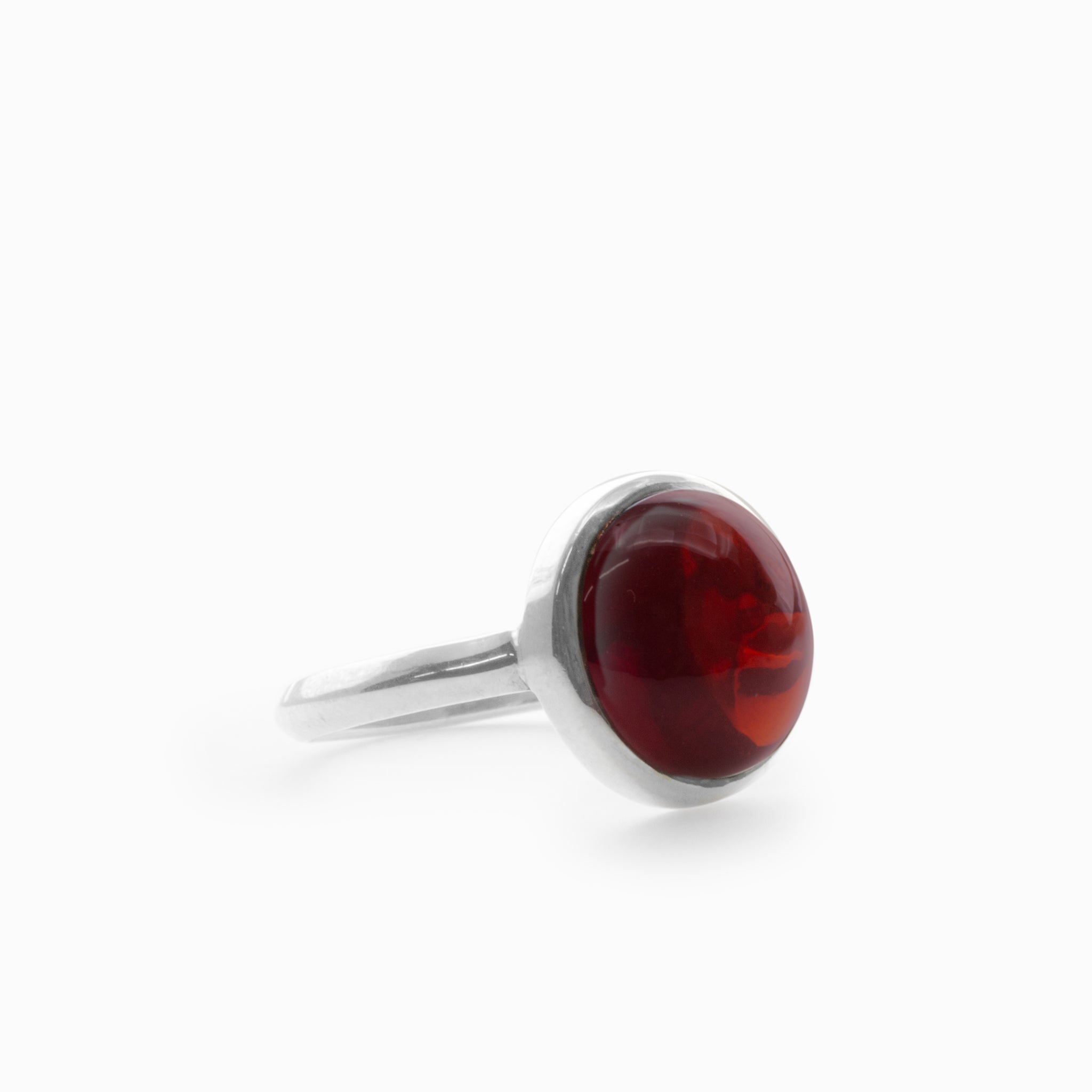 The cabochon style of this stunning round ring really allows the beautiful red tones to shine through and catch the light. The bezel setting allows the entire shape of the stone to be exposed, making it an elegant piece. Garnet is a rich crimson stone with an alluring sheen that is a must-have for every gemstone collection. Renowned for bringing both health and commitment, Garnet is a great gift to give to loved ones, especially if their birthday is January!